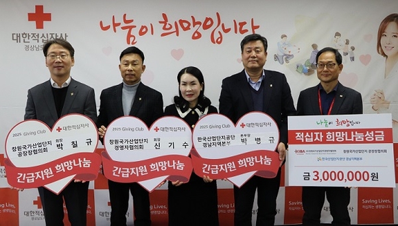 한국산업단지공단 경남지역본부는 16일 창원국가산업단지 경영자협의회, 공장장협의회와 함께 연말을 맞아 성금 300만 원을 대한적십자사 경남지사에 전달했다고 밝혔다.