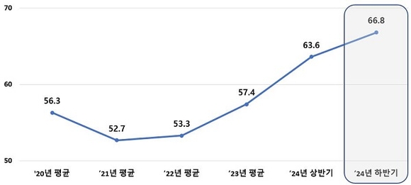 특히 도정 운영 전반에 대한 '긍정평가'는 2020년 도가 도민 의견 수렴을 시작한 이후 가장 높은 수치를 기록했다. 2020년 평균 긍정평가는 56.3%, `21년 평균 52.7%, `22년 평균 53.3%, 지난해 평균 57.4%에 이어 올해 상반기 63.6%로 최고점을 찍은 이후 하반기 조사에서는 3.2%p 오른 66.8%를 기록했다.
