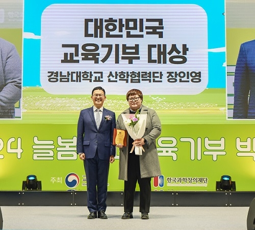 경남대학교는 산학협력단 장인영 연구원이 최근 일산 킨텍스에서 열린 ‘제13회 대한민국 교육기부 대상’ 시상식에서 교육기부 대상을 받았다고 18일 밝혔다.