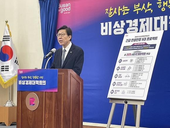 박형준 부산시장이 최근 경기 침체와 생활물가 상승으로 어려움을 겪는 시민들을 위해 총 4500억 원 규모의 '긴급 민생안정 5대 프로젝트'를 발표하며 지역 경제 회복과 복지 강화를 위한 전방위적 대응에 나섰다.
