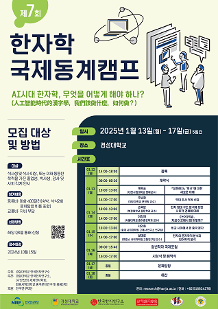 제7회 한자학 국제동계캠프는 ‘AI시대 한자학, 무엇을 어떻게 해야 하나?’라는 주제로, 한자학 분야의 젊은 연구자의 창의성과 전문성을 강화하는 학술 프로그램이다.