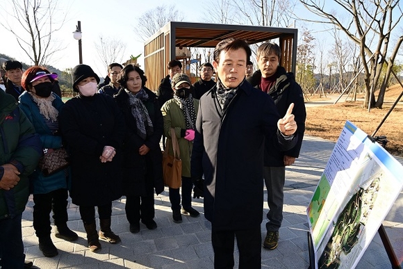조규일 진주시장이 19일 민간공원 특례사업으로 시행한 장재공원이 준공됨에 따라 시설물 기부채납 전 사전점검을 위해 현장을 방문, 공원의 주요 시설을 점검했다.