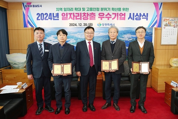 경남 창원시는 20일 어려운 경제여건에도 지역 일자리 창출을 위해 노력한 3개 기업을 '2024년 일자리창출 우수기업'으로 선정하고 표창패를 수여했다고 밝혔다.