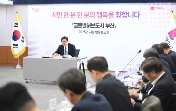 부산시가 23일 박형준 시장 주재로 시청 영상회의실에서 ‘2025년도 시정 업무보고회’를 열고 내년도 시정 운영 방향과 주요 정책을 점검했다고 밝혔다. 이날 보고회에는 박 시장을 비롯해 시 실·국·본부장과 산하기관장 등이 참석해 분야별 역점 과제를 논의했다.
