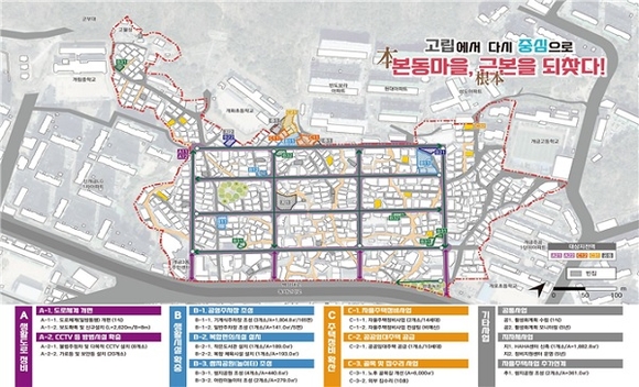 ‘부산진구 개금3동 본동마을’은 보도 확폭, 가로등·보안등 설치를 통해 도로를 정비하고 주차장, 도서관, 쌈지공원을 확충한다. 또한, 신규주택사업과 연계한 노후 골목길 개선과 외부 집수리를 추진할 예정이다.