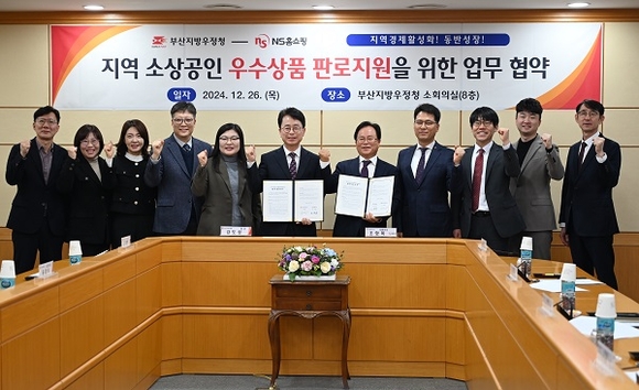 부산우정청은 26일 오전 청사 소회의실에서 NS홈쇼핑과 지역 소상공인 상품의 판로 확대 및 경쟁력 강화를 위한 업무협약(MOU)을 체결했다.