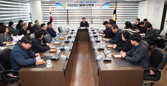밀양시의회는 2일 오전 충혼탑에서 참배를 한 뒤 시의회 소회의실에서 2025년 시무식을 갖고 새해 첫 의정활동을 시작했다.