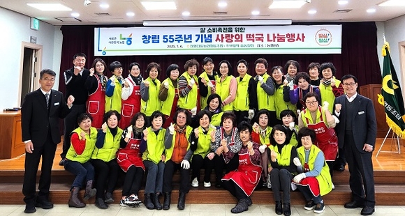 창원진동농협 임직원은 창원진동농협 창립 55주년이 되는 지난 6일 주부대학총동창회 회원들과 함께 진동면에 거주하는 주민들에게 '사랑의 떡국 나눔 행사'를 실시했다고 7일 밝혔다.