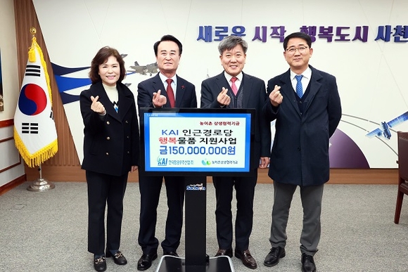 한국항공우주산업(KAI)이 7일 대·중소기업·농어업협력재단의 ‘KAI 인근 경로당 행복물품 지원 사업’을 통해 1억 5천만원 상당의 물품 전달식을 가졌다.