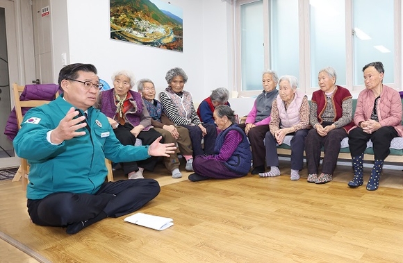 진병영 군수는 이날 뇌전마을 경로당, 당흥마을 노모당, 의중마을 경로당을 차례로 방문해 최근 급격히 떨어진 기온으로 건강관리에 어려움을 겪는 어르신들의 안부를 살피고 애로사항을 청취하는 등 소통의 시간을 가졌다.