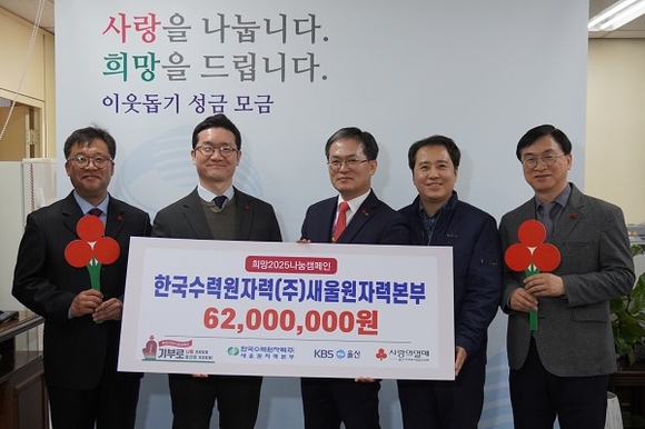 한국수력원자력 새울원자력본부 노사는 8일 KBS울산방송국에서 ‘희망 2025 나눔캠페인’ 성금 6200만원을 울산사회복지공동모금회에 전달했다.