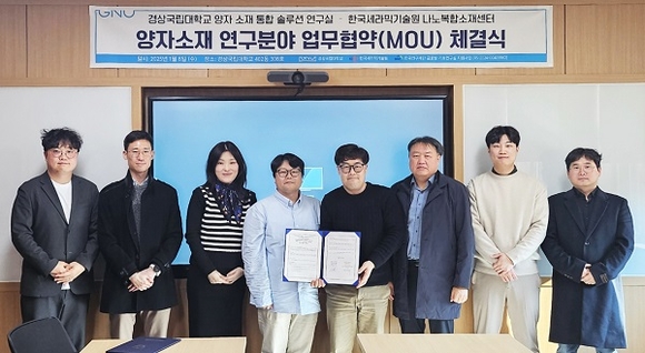 경상국립대학교는 글로벌기초연구실 양자소재통합솔루션 연구실과 한국세라믹기술원 나노복합소재센터가 지난 8일 경상국립대에서 양자 소재 연구를 위한 상호협력 협약을 체결했다고 10일 밝혔다.