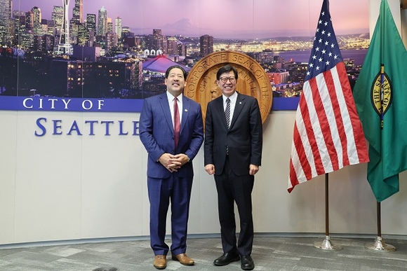 박 시장은 이날 오후 시애틀 시청을 방문해 브루스 해럴 시장과 회동했다. 시애틀은 아마존, 보잉, MS 등 세계적 기업 본사를 둔 첨단 산업 도시다. 해럴 시장은 “부산은 혁신 잠재력이 높은 도시”라며 “시애틀과 부산이 협력해 저탄소 도시, 첨단 기술 도시로 함께 성장하기를 기대한다”고 말했다.
