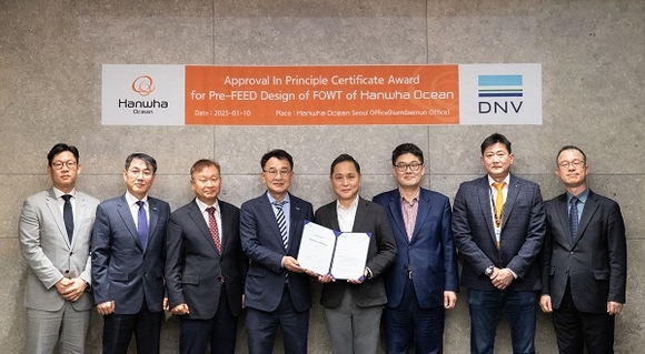 한화오션은 노르웨이 선급 DNV로부터 해상풍력발전기 하부 부유체의 개념설계(Pre-FEED)에 대한 개념 승인(AIP)을 획득했다고 13일 밝혔다. 개념 승인은 기술의 안정성과 국제 규정 준수 여부 등을 검증하는 인증 절차다.