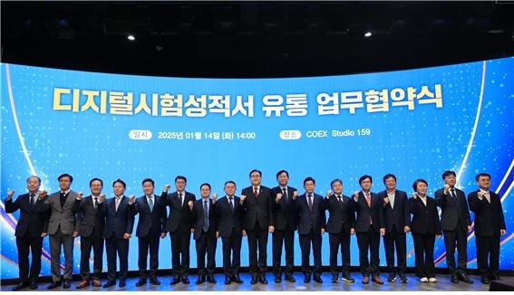 한국남부발전이 14일 서울 COEX에서 산업통상자원부, 한국전력, 한국에너지공단, 남동·서부·중부·동서발전, 국내 7대 시험인증기관 및 한국무역정보통신(KTNET)과 공동으로 디지털시험성적서 유통 활성화를 위한 협력 양해각서(MOU)를 체결했다고 밝혔다.