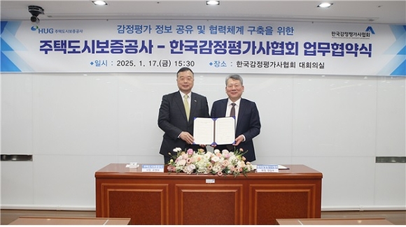주택도시보증공사(HUG)가 한국감정평가사협회와 지난 17일 감정평가 정보교류를 위한 업무협약을 체결했다고 밝혔다.
