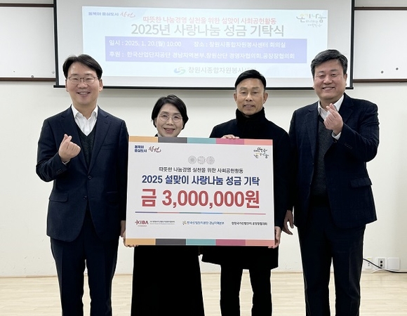 전달식에 참석한 박병규 산단공 경남본부장, 신기수 경영자협의회장, 박칠규 공장장협의회장은 “소외된 이웃들이 따뜻한 설을 보내는 데 조금이나마 보탬이 되길 바란다”며 “창원국가산단 기업들과 함께 지역 내 나눔문화 확산에 지속적으로 동참하겠다”고 전했다.