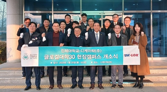 인제대학교는 지난 20일 디케이락 본사에서 현장캠퍼스 개소식을 열고 글로컬대학으로서 산학 협력을 강화하고 실무 중심 교육을 본격화했다.