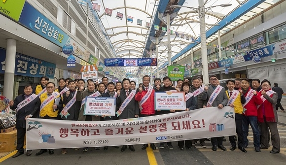 남동발전은 22일 마산 어시장에서 지역사회에 온정을 전하고 상권 활성화를 통한 내수경기 진작을 위해 ‘유관기관 협업 사회공헌활동’을 펼쳤다고 밝혔다.