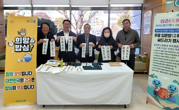 NH농협은행 경남본부는 3일 입춘을 맞아 ‘진재 이성곤’ 서예가를 초청해 경남영업부 객장에서 무료 입춘첩 나눔 이벤트를 실시했다.