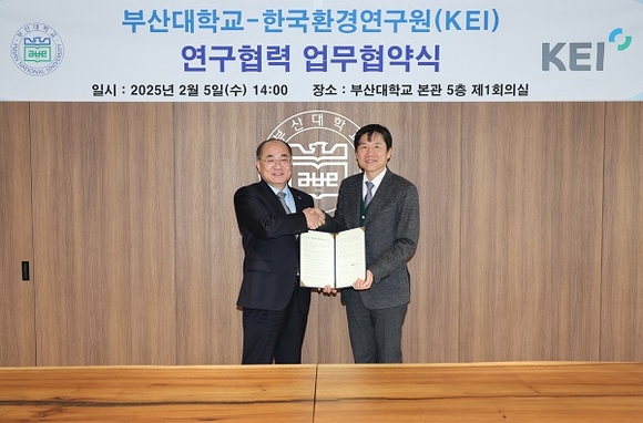 부산대학교는 한국환경연구원(KEI)과 5일 오후 교내 대학본부 5층 제1회의실에서 환경정책 및 계획 분야 연구 협력을 강화하기 위한 업무협약을 체결했다고 밝혔다.