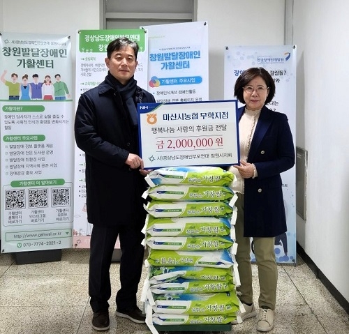 마산시농협 무학지점은 지난 4일 경상남도장애인부모연대 창원시지회를 방문해 후원금 200만원과 쌀 100kg을 전달했다고 6일 밝혔다.
