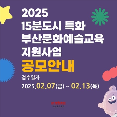 부산문화재단이 ‘2025년도 15분도시 특화 부산문화예술교육 지원’을 통해 15분 도시 정책과 전 생애주기에 걸친 창의적 나이듦을 실현할 수 있는 문화예술교육 프로그램 공모를 진행한다.