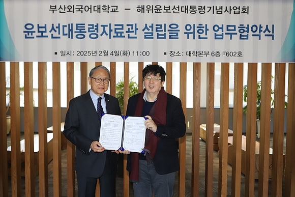 부산외국어대학교는 지난 4일 본교 대회의실에서 해위윤보선대통령기념사업회 부설 윤보선민주주의연구원과 윤보선 대통령 자료관 설립을 위한 업무협약을 체결했다고 7일 밝혔다.
