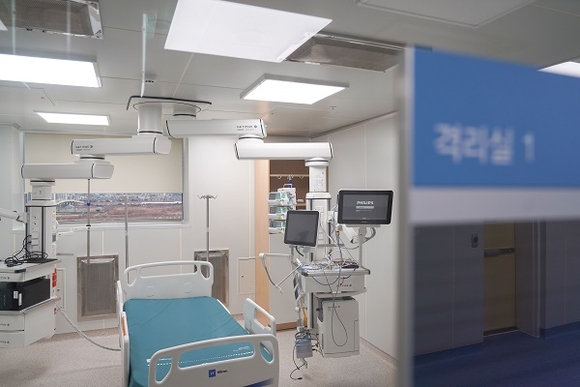 또한 음압격리 중환자실로 구성돼 모든 병상이 1인 격리실 형태로 운영된다. 음압격리 중환자실은 병실 내부의 기압을 음압으로 유지해 외부의 공기가 병실 안으로 들어올 수 있지만, 병실 내부의 공기는 외부로 나갈 수 없는 구조로 돼 있어 감염병 확산을 효과적으로 차단할 수 있는 장점이 있다.