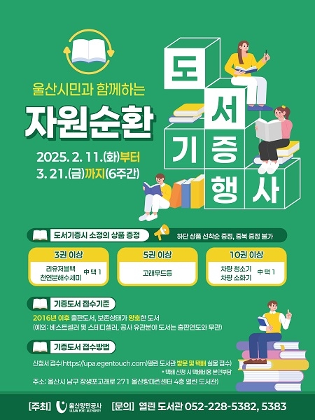 울산항만공사(UPA)는 ‘울산시민과 함께하는 자원순환 도서기증 행사’를 개최한다고 10일 밝혔다.