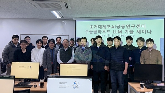 지난달 구글클라우드 미국 본사 방문 이후 후속 조치로 마련된 이날 세미나에는 구글클라우드 이상규 매니저, 전병찬 데이터매니지먼트 스페셜리스트, 박경표 AI/ML스페셜리스트 등과 함께 경남대학교 초거대제조AI공동연구센터 연구진(참여교수, 연구원, 학생연구원)과 소르테크 제조AGI연구소 연구진이 참여했다.