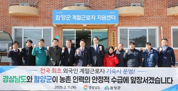 '함양군 외국인 계절근로자 지원센터'는 지난해 4월 전국 최초로 계절근로자 기숙사를 운영하며 농촌 인력난 해소에 기여하고 있다. 총 42명이 입주할 수 있으며, 함양군은 증가하는 수요에 맞춰 올해 추가 기숙사 건립을 추진 중이다.