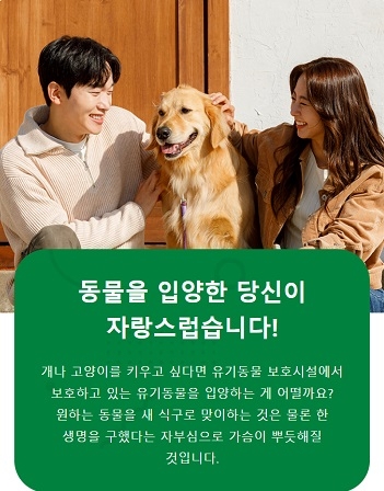 유기동물 입양을 희망한다면 누리집 국가동물보호정보시스템에서 구조동물 - 입양대상 동물 페이지에서 찾아볼 수 있다.