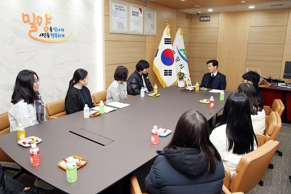경남 밀양시는 12일 시장 집무실에서 밀양시청소년문화의집 청소년운영위원회 청소년 11명을 초청해 소통의 시간을 가졌다고 밝혔다.