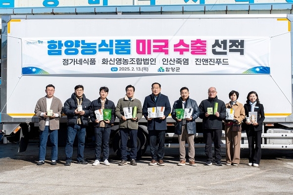 경남 함양군은 13일 수동면 구 함양미곡종합처리장 일원에서 백삼종 함양군 부군수를 비롯한 수출 관계자 15명이 참석한 가운데 함양농식품을 미국 메가마트에 수출하는 선적식을 진행했다고 밝혔다.