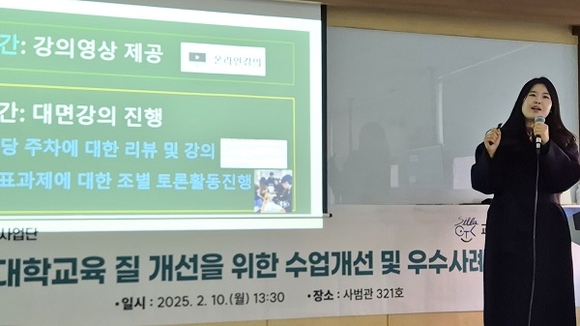 지난 10일 사범관에서 진행된 ‘2024 대학교육 질 개선을 위한 수업개선 및 우수사례 공유회’에서 △역사교육과 지모선 교수의 ‘교수법 학습공동체’ △사회복지학과 초의수 교수의 ‘지산학 이음 교육공동체’ △사회복지학과 정수정 교수의 ‘하이브리드 클래스’ △일어교육과 김세련 교수의 ‘위드 GPS+’ △체육학부 김종빈 교수의 ‘현장실무중심 특성화 GPS’ 등 5개 프로그램이 우수사례로 선정됐다.