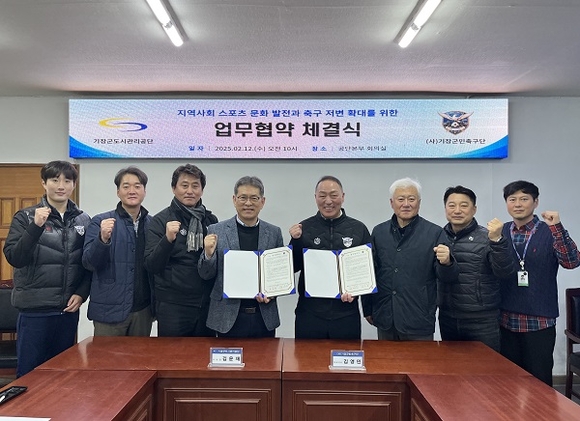 기장군도시관리공단이 지난 12일 공단 본부에서 (사)기장군민축구단과 공식 업무협약을 체결했다고 밝혔다. 이번 협약은 지역 대표 축구단의 발족을 기념하며, 선수단 기량 향상과 지역 축구 발전을 위해 추진됐다.