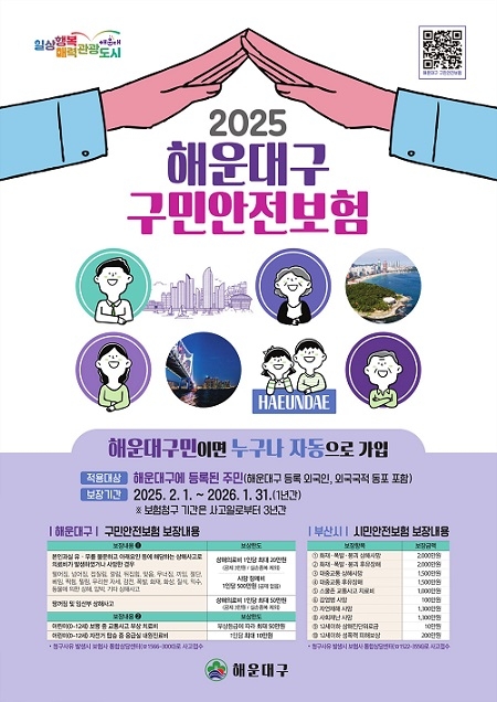 해운대구 관계자는 “구민들의 일상 속 안전을 더욱 강화하고자 보험 보장 항목을 확대했다”며 “앞으로도 구민들이 보다 안심하고 생활할 수 있도록 지원책을 지속적으로 마련해 나가겠다”고 밝혔다.