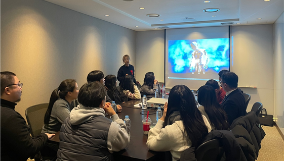 전시 탐방을 마친 후 문화산업, 엔터테인먼트산업, 문화콘텐츠기획 분야 전문가인 국립창원대 문화테크노학과 유지연 교수의 특강이 진행됐다. ‘디지털문화콘텐츠기획 인사이트: 트렌드와 전략의 융합’을 주제로, 디지털 기술이 문화산업과 콘텐츠 기획에 미치는 영향을 분석하고, 각 분야 간 융합을 통한 혁신 전략 및 미래 전망을 제시하며 학생들의 실무적 이해를 높였다.