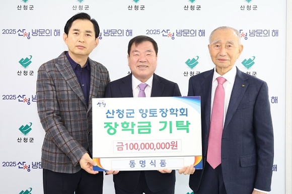 경남 산청군은 동명식품이 향토장학금 1억원을 기탁했다고 14일 밝혔다.