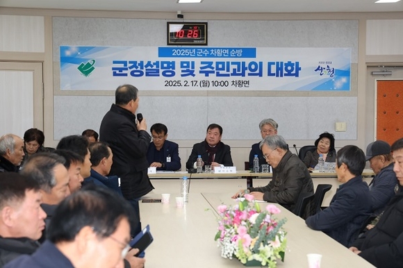 이승화 군수는 17일 오전 차황면에서 지난해 군정 주요 성과 보고 및 올해 군정의 주요 사업 및 시책 설명을 시작으로 군민들과의 대화의 시간을 가졌다.
