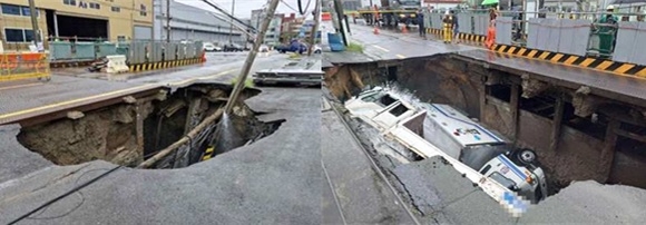 이 과정에서 차수공법이 시공되지 않은 목재 토류판 구간으로 물이 스며들면서 지하수와 함께 토사까지 빠져나가기 시작했다. 결국 토류판이 무너졌고, 굴착 구간 양쪽으로 빈 공간이 생기면서 지반이 주저앉았다.
