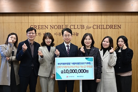 부산지방우정청은 2024년 한 해 동안 부산·울산·경남지역 우체국을 통해 모금한 ‘사랑의 동전’ 1천만원을 초록우산 어린이재단에 전달했다고 18일 밝혔다.