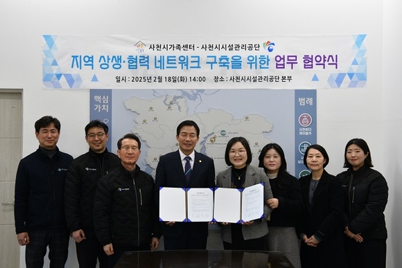 사천시시설관리공단은 18일 오후 공단 본부 이사장실에서 사천시가족센터와 '지역 상생 협력 네트워크 구축을 위한 협약'을 체결했다.