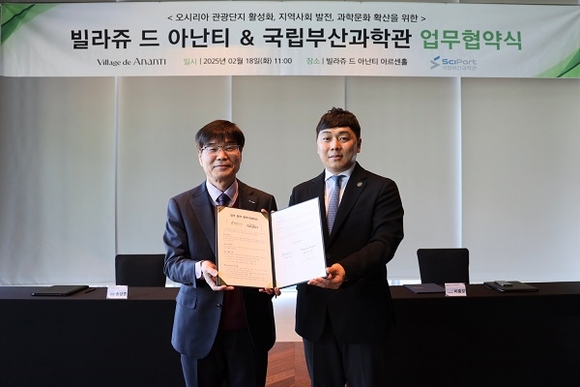 국립부산과학관과 빌라쥬 드 아난티가 지난 18일 빌라쥬 드 아난티 아르센홀에서 오시리아 관광단지 활성화 및 과학문화 확산을 위한 업무협약(MOU)을 체결했다고 밝혔다.