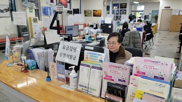 부산 해운대구 좌1동 행정복지센터에서 근무하는 장애인행정도우미 김희자 씨가 민원인들에게 제공하는 친절하고 세심한 서비스로 화제가 되고 있다.