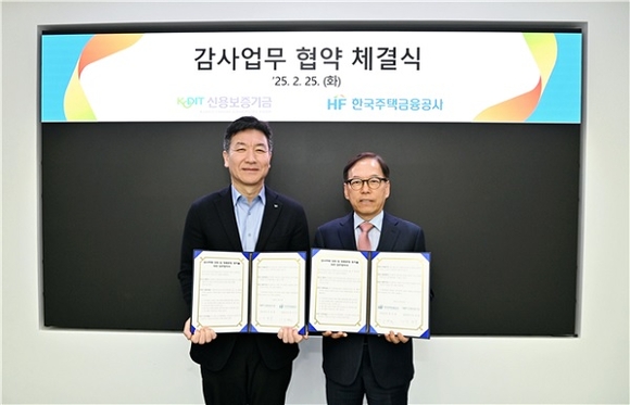 한국주택금융공사(HF)가 지난 25일 신용보증기금(KODIT)과 ‘감사역량 강화 및 청렴문화 정착을 위한 감사업무 협약’을 체결했다고 밝혔다.