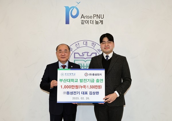 동성전기는 1968년 설립돼 3대를 이어 온 지역 향토기업으로, 50여년 동안 방산물자 생산 및 연구·개발에 활발히 참여하고 있다. 이번 발전기금은 지난해 부산대 기계공학부 지원을 위해 500만원을 출연한 데 이은 두 번째 기부다.