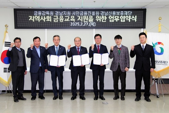 금융감독원 경남지원과 경남신용보증재단, 서민금융진흥원은 27일 경남신보에서 지역사회 금융교육 활성화를 위한 3자간 업무협약(MOU)을 체결했다.