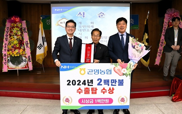 농협 수출달성탑은 수출실적을 1백만불 단위로 갱신한 농협에 수여하는 상으로 곤명농협은 2023년 처음으로 농식품 수출 1백만불 달성한 후 1년만에 1백만불을 갱신하는 쾌거를 거뒀다.
